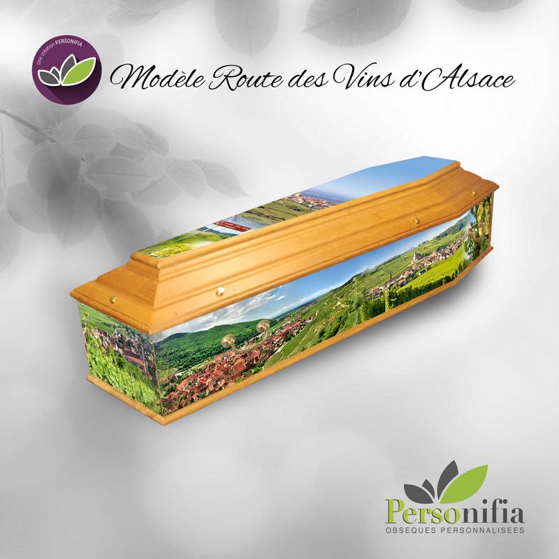 Etendu sur une distance de plus de 170km de beauté naturelle et de paysage pittoresque Personifia à voulu représenter ce magnifique paysage à travers un cercueil personnaliser en tombeau chêne au couleur de la route des vins d'alsace.